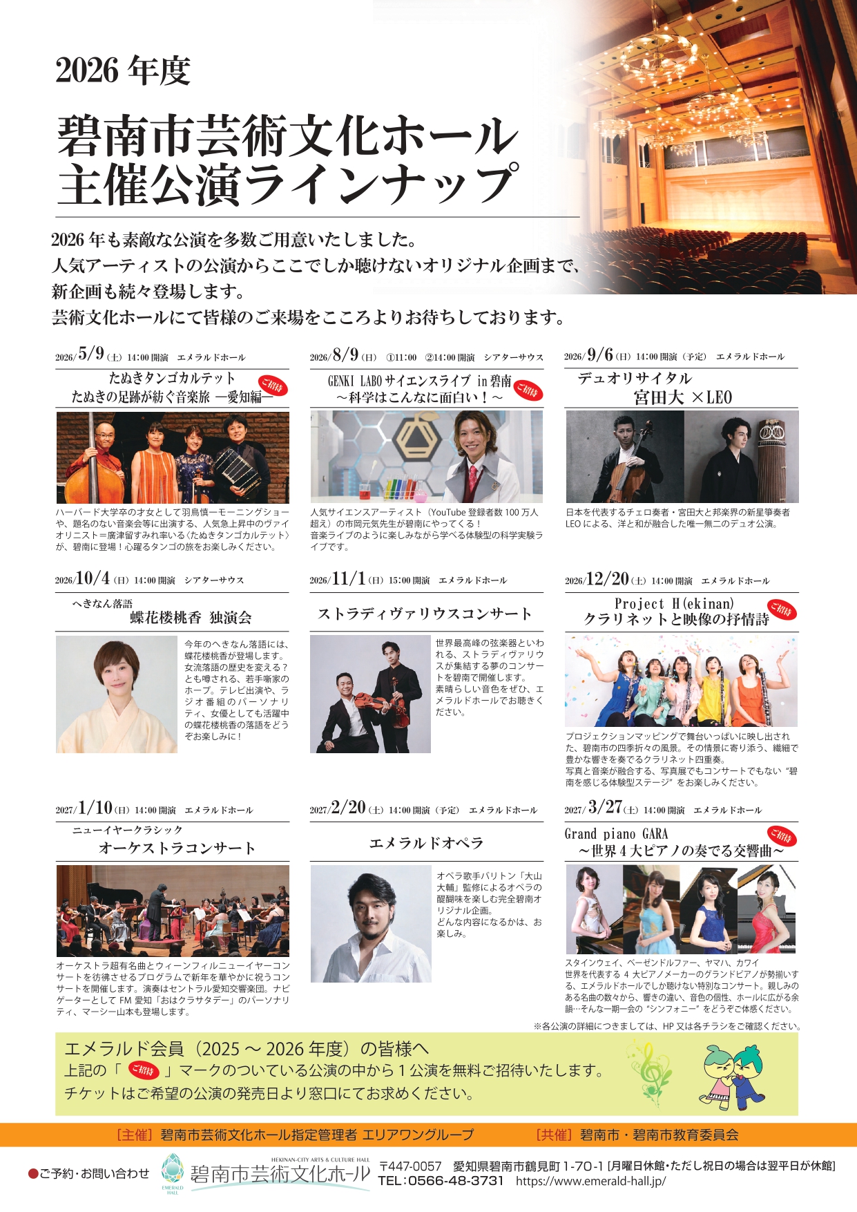 2026年度碧南市芸術文化ホール主催公演ラインナップのご案内!